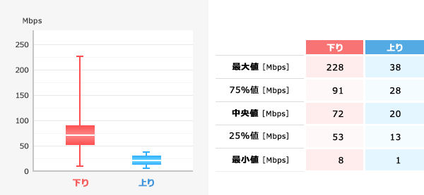 auは今まで下りしか、こういうわかりやすい図で公表していませんでした。各地点の計測結果は公表しているため、他社がグラフ化は可能なわけです。